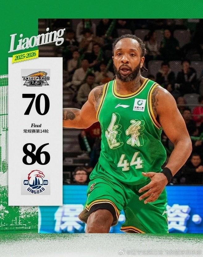 1月13日,遼寧男籃在主場以70比86不敵青島隊。