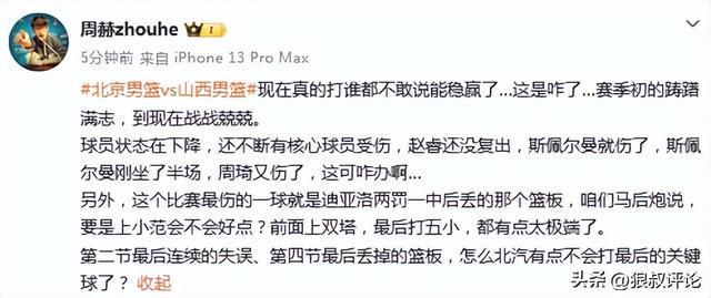 籃球記者賈磊發(fā)文點(diǎn)評(píng):