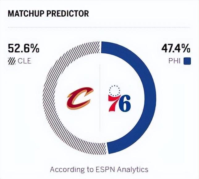 反觀76人,上一場主場大比分失利,全隊整體狀態低迷,攻防兩端均未打出應有水準。球隊核心恩比德雖拿下全隊最高的20分,但面對騎士雙塔的針對性防守,進攻端明顯感到吃力;馬克西則陷入投籃低迷,16投僅5中,僅得到14分,遠低于正常水準;喬治貢獻17分、埃奇庫姆拿下9 分,烏布雷與格萊姆斯坐鎮的替補席,整體表現平平,未能為球隊提供有效火力支援。76 人目前的防守水準本就難言出色,若此番交手仍無法在進攻端建立壓制,想要憑借防守限制住進攻火力兇猛的騎士,難度可想而知。ESPN的賽前預測,騎士勝率為54.0%,而76人的勝率只有46.0%。