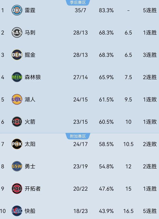 等等,快船竟然以18勝23負(fù)升至了附加賽區(qū)域......北伐之路,正式開啟。