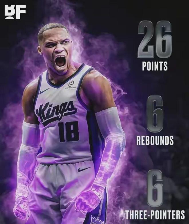 此役威少出戰(zhàn)31分鐘,投籃14中9,三分9中6貢獻(xiàn)26分2板6助。
