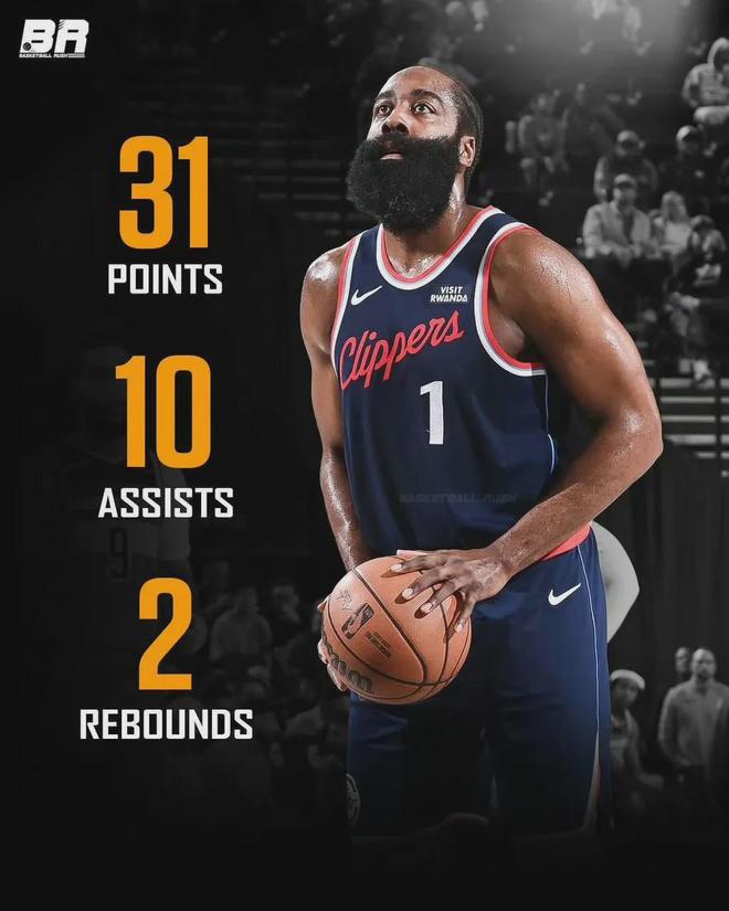 此役單核帶隊(duì)的哈登,出戰(zhàn)42分鐘,投籃27中10,其中三分15中2,收獲31分10助兩雙數(shù)據(jù)。