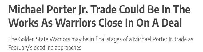 對勇士而言,這筆交易是圍繞庫里爭冠窗口期的精準補強,卻也暗藏風險。本賽季勇士以23勝19負位居西部第八,雖保留季后賽希望,但外線火力穩定性不足、鋒線攻防深度有限的問題凸顯。小邁克爾·波特的到來,恰好能填補最關鍵的短板。本賽季場均貢獻25.9分7.5籃板3.4助攻的他,以40.4%的三分命中率場均命中3.7記三分,其無球跑動能力與精準投射,能完美適配勇士的傳切體系。庫里無球端的歷史級牽制力,將為波特創造大量空位三分機會;而波特的外線威脅,也能反向拉開空間,為庫里、巴特勒的突破創造條件,形成“外線三核”的火力網。