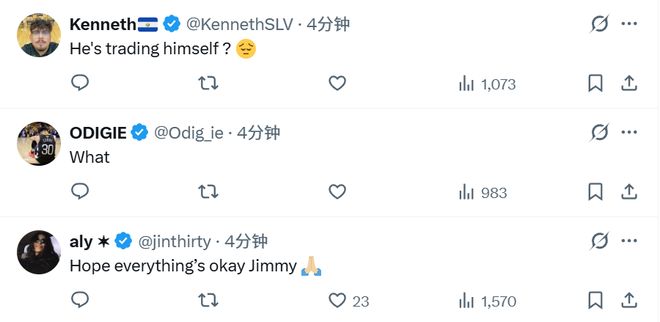 巴特勒的臨時休戰,也讓球迷們在官方評論區里展開熱議。有不少球迷認為巴特勒可能要被交易了,通常情況下,把球員臨時撤出比賽,常常與交易有關。但更多球迷是在送祝福,希望巴特勒沒有問題。一些球迷表示,巴特勒可能是家中出了急事,導致他不能出戰這場比賽。