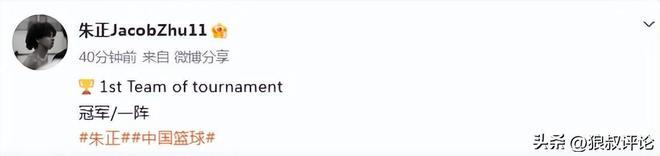 國青混血小將朱正表現出色,拿下18分6板2助攻率隊完成奪冠,入選最佳陣容一陣。