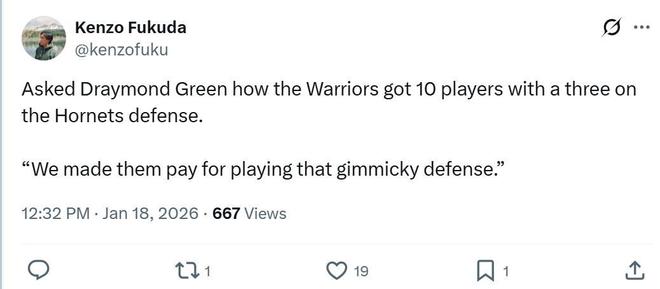 而勇士隊之所以多點開花,一方面是因為球員狀態回暖,另外一方面也是因為黃蜂隊堪稱“奇葩”的防守策略。