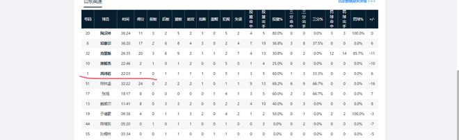 從全場數據來看,江蘇男籃與山東男籃的籃板數比為30-40,助攻數比為24-19,失誤數比為15-20,投籃命中率比為56.3%-45.6%。顯然,江蘇男籃贏在了命中率和戰術執行力上。