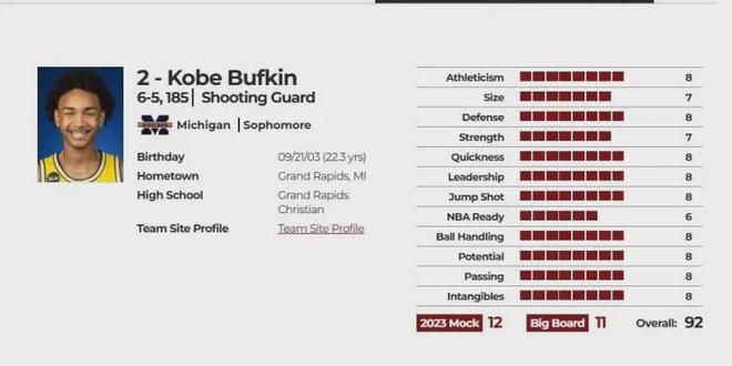 選秀綜合評(píng)分92分,預(yù)計(jì)選秀順位首輪11-12順位,實(shí)際首輪第15順位,選秀模板喬丹-普爾(這模板就注定其職業(yè)生涯充滿波折).