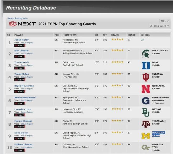 霍華德親自對巴夫金進(jìn)行考察,很快就發(fā)出招募獎(jiǎng)學(xué)金,面對霍華德的招募巴夫金也立刻同意,2021年高四賽季,巴夫金受到傷病影響只打了五場比賽,ESPN綜合評(píng)分87分四星高中生,在全美百大高中生中排名第40,在全美所有得分后衛(wèi)中排名第9,同屆排名第1的是杰登-哈迪,排名第2的則是前湖人科比明星臉球員-克里斯蒂.