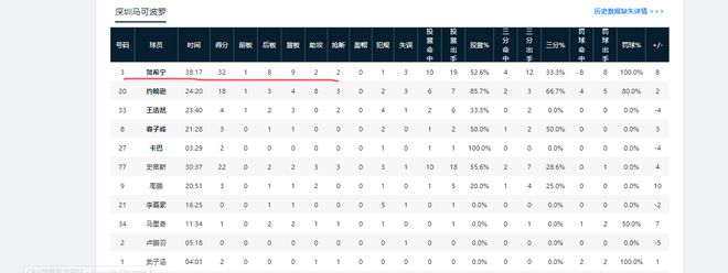 而且在已打完的16場比賽中,賀希寧單場得分超過20的比賽就有8場。可見他的表現有多么出色。