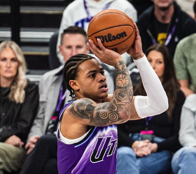 重新回到比賽之后,爵士不敢再放文班亞馬投射,哪怕是在三分線外都選擇貼身盯防,受到嚴防的法國高塔,下半場并沒有選擇強項出手,更多是牽制防守后,給隊友創造機會,四節戰罷靠著18次出手命中10的發揮,其中三分球12投7中,用33分、10個籃板、1次助攻、2次搶斷和2個封蓋填滿了數據欄。