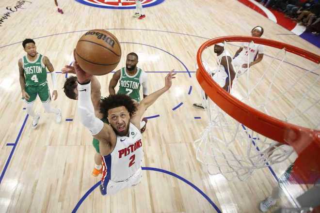 進入第四節比賽,凱爾特人連得5分反超,活塞一波7-0攻勢奪回領先優勢。凱爾特人連得4分追到91-91,坎寧安拋射與鄧羅三分擴大5分優勢,凱爾特人一波6-0攻勢反超1分,其中鄧羅一度吃T。哈里斯三分命中,布朗兩罰全中追平,坎寧安拋射得分,布朗兩罰不中,哈里斯再中三分擴大5分優勢。布朗連得4分追到差1分,活塞連續投籃不中,布朗絕殺一投不中,最終活塞險勝凱爾特人。
