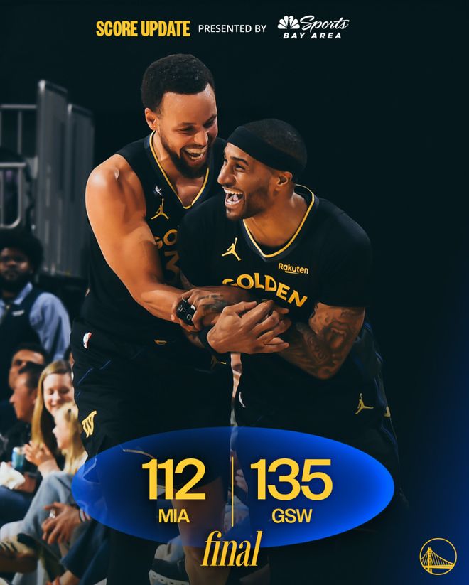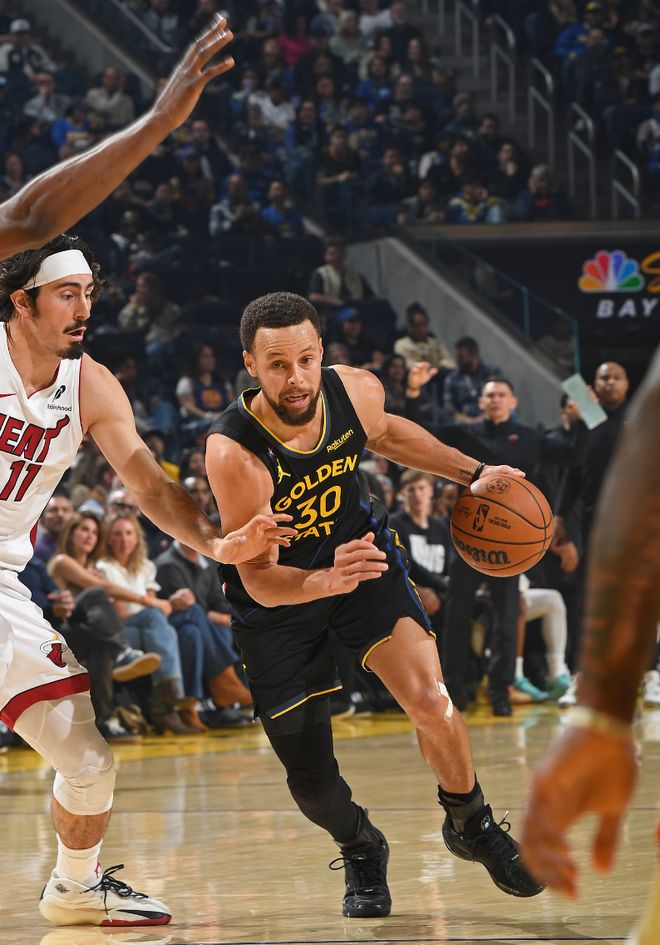 在波杰連續命中兩個三分打停熱火,庫里起身為波杰慶祝了,熱火隊也放棄比賽換全替補了,庫里末節3分鐘打卡,全場比賽僅僅出戰27分48秒,13中6,三分10中5,拿到19分11助攻3籃板3失誤,命中率46.7%,三分命中率50%,正負值+3。