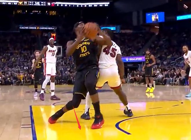 第三節(jié)還剩7分42秒,巴特勒內(nèi)線接球,米切爾是繞前想要破壞這個(gè)球權(quán),兩人在空中有一個(gè)小碰撞,巴特勒落地時(shí)他的右腿有一個(gè)震蕩,右膝小范圍的反關(guān)節(jié)。