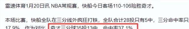 這與奇才全隊在外線的火熱手感形成了鮮明對比,比賽期間快船的球員整體手感下降,這一變故直接拉開了雙方的差距。