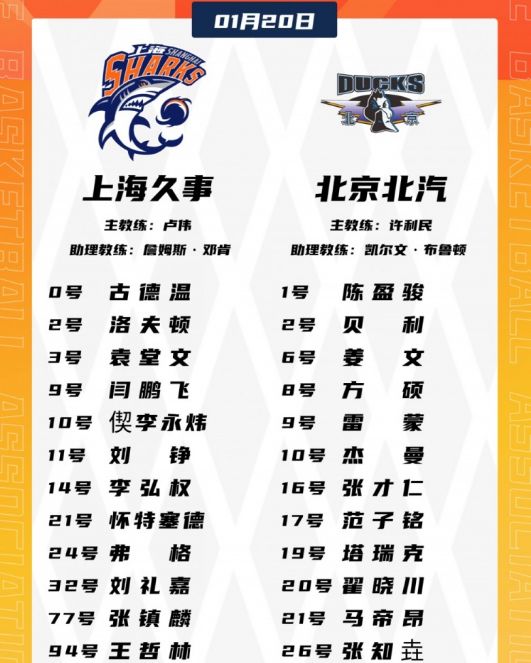 北京3位本土核心周琦、趙睿與曾凡博均因傷缺席,外加斯佩爾曼也傷停,上海缺少李添榮。