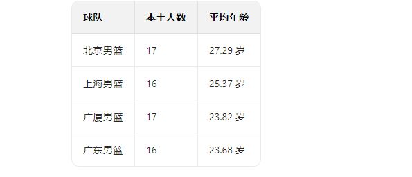 本期內容,來對比下四大豪強球隊,上海男籃、北京男籃、廣廈男籃、廣東男籃在CBA25-26賽季中的陣容平均年齡。