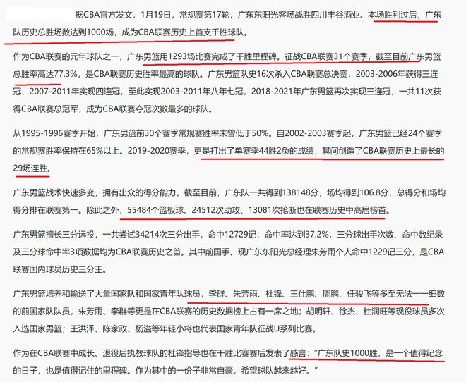 隨著廣東隊拿到第1000場勝利,成為CBA又一個第一,CBA公司也是正式發(fā)文祝賀廣東隊!達到隊史1000勝的成就!