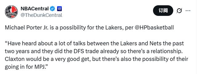 他寫道:“過去兩年,湖人和籃網之間有過諸多交易談判,雙方此前也完成了關于多里安-芬尼-史密斯的交易,因此兩隊保持著良好的合作關系。克拉克斯頓會是一筆極佳的引援,不過球隊也有可能追求小邁克爾-波特。”