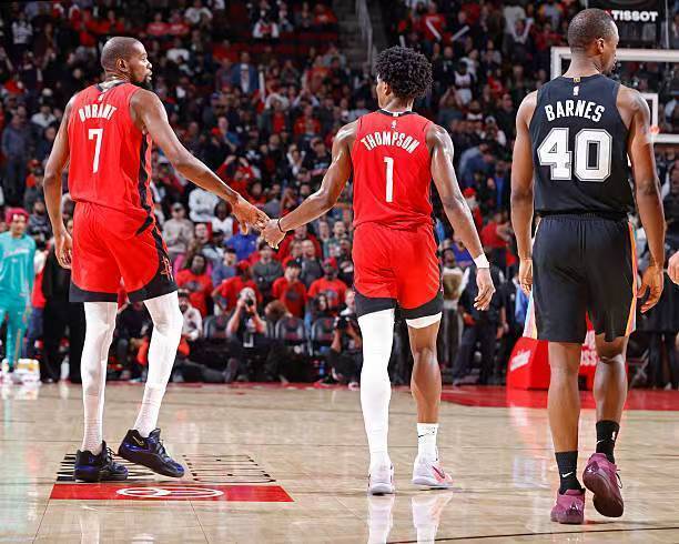 本場比賽中,火箭的先發控衛阿門-湯普森(Amen Thompson)的表現依然是令人喜憂參半。阿門全場出場39分13秒,投籃14中6,三分線外2中0,罰球5中4,得到了16分10籃板6助攻1搶斷2蓋帽的數據,還有3次失誤,正負值為+7。阿門在進攻端雖然依然沒有辦法找到外線投籃方面的手感,但是他在中距離投籃方面的表現倒是有些出人意料的,他在這方面確實是是起到了一定的作用。不僅如此,阿門在防守端的表現也是可圈可點的,給對手的后場新星斯蒂芬-卡斯爾(Stephen Castle)制造了不小的威脅。當然了,作為一名控衛,阿門在傳球和組織方面的表現還是比較一般的,他也需要進一步優化一下自己的進攻選擇以提升自己的進攻效率和成功率。