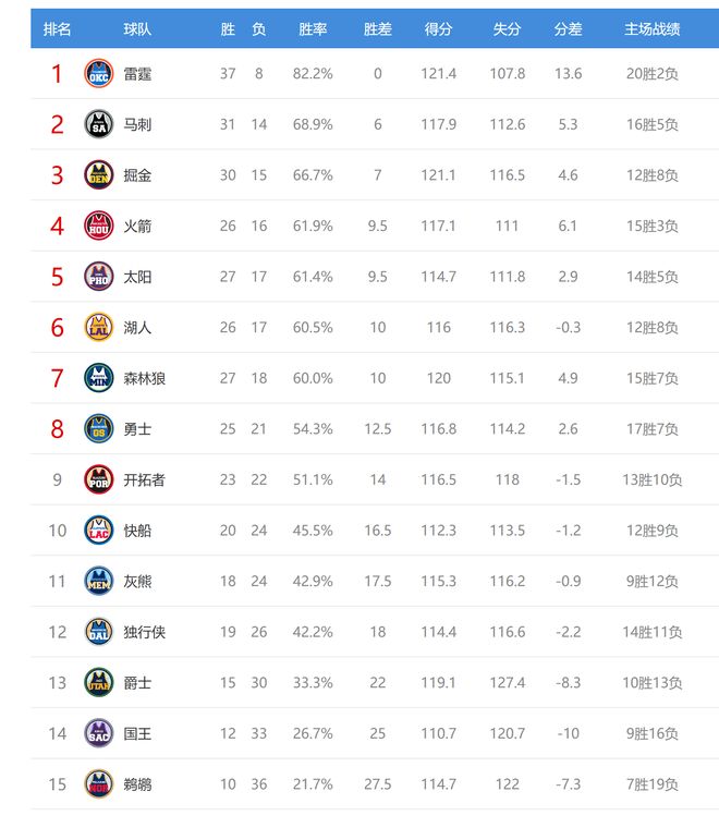 馬刺贏球后31勝14負(fù),排名西部第二,領(lǐng)先第三的掘金1個(gè)勝場(chǎng)。