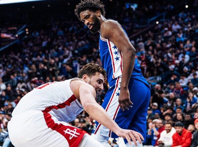 76人128-122火箭,大帝爆砍32分+15籃板+10助攻