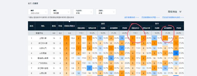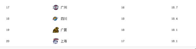 第4名-第16名分別是山西男籃(22.8次)、廣東男籃(21.9次)、江蘇男籃(21.9次)、福建隊(duì)(21.8次)、新疆(20.9次)、天津(20.7次)、浙江(20.5次)、深圳(20.4次)、北控(20.3次)、吉林(20.1次)、遼籃(19.7次)、北京(19.5次)、青島(19.2次)。