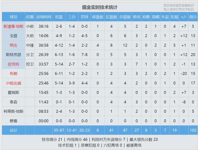 本場比賽,字母哥打了32分鐘,8投4中,罰球16中14,拿到22分13籃板7助攻4失誤,正負值+6。雄鹿上一場102-122不敵雷霆,字母哥同樣出戰32分鐘,11投8中,罰球6中3,得到19分14籃板7助攻1搶斷。這兩場加起來只出手19次。