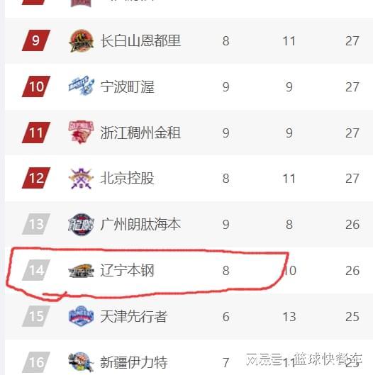 可僅僅過了一天后,遼寧隊便被迅速踢出季后賽行列了。這一輪比賽,隨著吉林隊和北控隊雙雙贏球,積分榜排名隨即發生變化。吉林隊直接上升到積分榜第9名,寧波第10,浙江第11,而北控隊在擊敗北京隊以后,他們也殺到了積分榜第12名。這樣以來,遼寧隊便被直接踢出季后賽行列了,他們目前以8勝10負,排在積分榜第14名,這也是遼寧隊過去十年來,最差的開局。