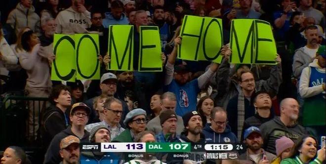 獨行俠球迷對著東契奇舉大標語:Come Home(回家吧)!