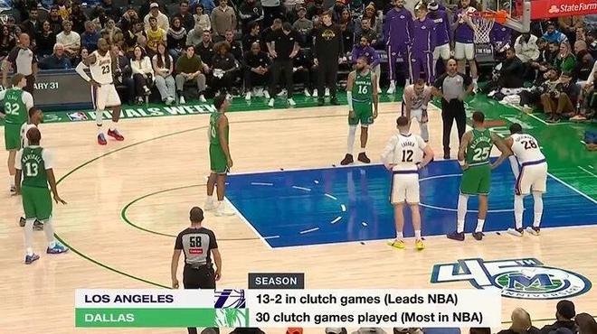一項數據,湖人關鍵時刻比賽13勝2負聯盟第一,獨行俠打了30場關鍵比賽聯盟最多