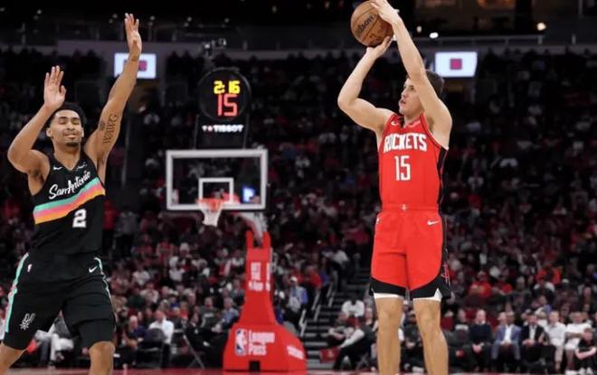 但謝潑德并沒有因此消沉。正如杜蘭特在賽后所言,無論當天手感如何、球隊輸贏結果怎樣,謝潑德第二天都會全力投入訓練,保持極高的職業態度。這種韌性讓他在對陣馬刺的關鍵一戰中徹底爆發。他出戰29分鐘,17投8中(三分10投4中),罰球2中1,砍下21分2籃板4助攻1搶斷1蓋帽,其中第四節獨得12分,成為逆轉的最大功臣。那一節,他展現出全面的得分手段:無球跑動接球三分、持球強投遠距離三分、突破面對兩人包夾滯空反手上籃,樣樣精通。球迷們直呼看到了“休斯頓自研庫里”的影子,一個既能控球又能拉開空間的后衛,對對手外線威脅極大。