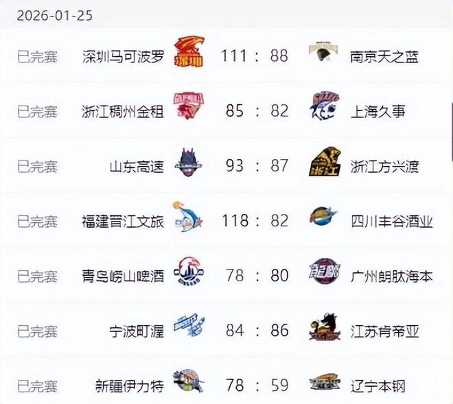 CBA第19輪的比賽已經結束,這輪比賽打得非常激烈,四強里的廣廈男籃、上海男籃和青島男籃都輸掉了比賽,只有廣東男籃力克了山西男籃。其他的比賽中,北京男籃輸給了同城對手北控男籃,曾經的三連冠強隊遼寧男籃更是不敵新疆男籃遭遇四連敗,淪為了一支弱旅。先來看一下這輪比賽的具體對陣情況,然后看一下積分榜排名的變化。