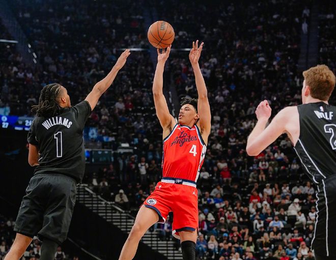 后半段快船最多拉開38分,籃網依靠沃爾夫和夏普在節末稍稍止血,半場快船68-37籃網。進入第三節,哈登和倫納德繼續造殺傷,籃網這邊曼恩和克拉克斯頓單打,哈登喂餅科林斯回應三分。中段科林斯暴扣,接到哈登傳球側翼再中三分,快船始終保持30分左右領先。節末當籃網打出小高潮時,小克里斯蒂和米勒內外開花止血,三節打完,快船96-66籃網。第四節儼然失去懸念,但泰倫盧還是讓小卡多打了4分鐘,最終比分定格在126-89,快船37分大勝籃網。