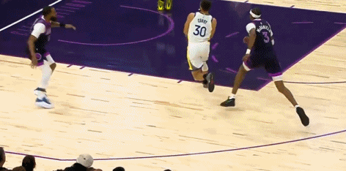第三節,勇三瘋不早不晚準時上線,單節38-17,凈勝森林狼21分,直接打花了比賽。