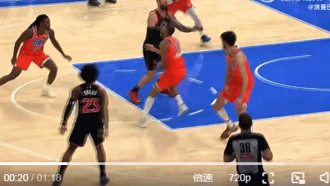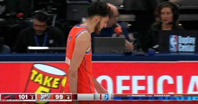 最后30秒,雷霆關鍵一攻,切特單打巴恩斯,突破急停跳投慘遭迎面大帽