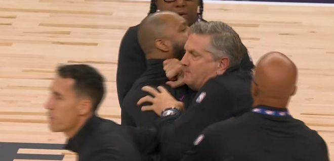 比賽都毫無懸念了,不過,詫異的是,最后時刻,波斯特和英格爾斯卡位互相推搡,差點還打起來了