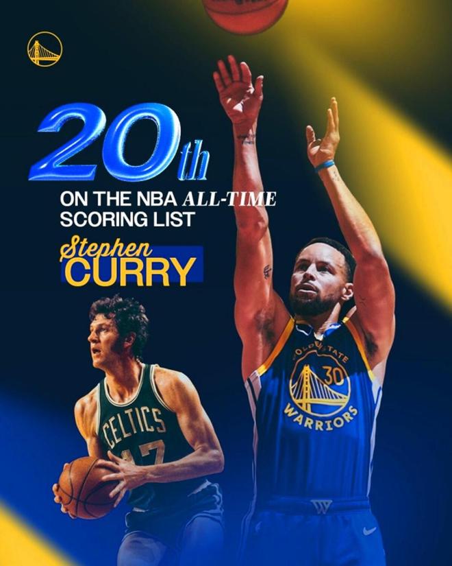 憑借這樣的表現,庫里生涯總得分來到26397分,成功超越歷史第20名的哈弗里切克,與皮爾斯并列歷史第19名,下一步將追逐18名的鄧肯(26496分)。