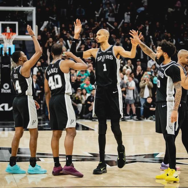 接下來說說馬刺和鵜鶘這一場,鵜鶘籃板球58-46領先馬刺,前場籃板19-10碾壓馬刺。錫安18中10砍下24分10板4助,文班16中6拿到16分16板4帽。過去一個月馬刺只有8勝8負,約老師近一個月都沒打比賽,掘金依然追平了馬刺。