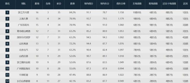 反觀遼寧隊多年的死對頭廣東隊,本賽季至今以15勝4負排名聯盟第三;昔日愛將張鎮麟的新東家,上海隊戰績同樣為15勝4負高居聯盟第二;24年夏天交易走的郭艾倫,所效力的廣州隊以10勝8負位列聯盟第十。