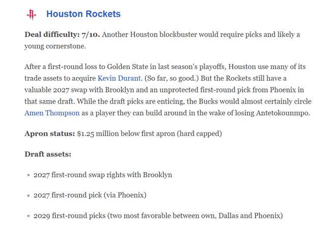首輪簽方面,火箭隊不僅握有27年與籃網的首輪互換、27年太陽首輪簽和29年火箭、獨行俠與太陽三支球隊中更好的兩枚首輪簽,還有自家數枚可以交易的首輪,對于送走字母哥大概率將重建的雄鹿隊自然十分具有吸引力。