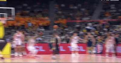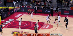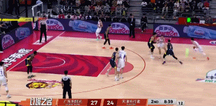 6分08秒,詹姆斯飚進弧頂三分,天津一波7-2反超廣東5分,關鍵時刻薩姆納跳起飛膝物理性殺傷小雷諾茲送出助攻,薩林杰輕松上籃得手。