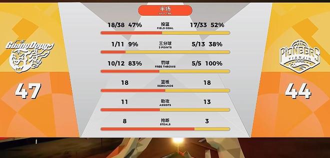 這一節兩隊你追我趕,廣東和天津的單外援陣容打的不亦樂乎,場上菜雞互啄,半場戰罷廣東憑借奎因薩姆納半場合力砍下的33分,艱難47-44領先天津,上半場廣東三分11中1,本土球員僅得10分,天津飚進5記三分,本土球員拿到23分,谷澤裕半場13分8助,一人打爆胡明軒楊溢。