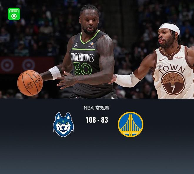 北京時間1月27日NBA 常規賽,勇士背靠背客場再戰森林狼。本場勇士庫里、格林、梅爾頓、霍福德均缺陣,森林狼愛德華茲缺陣。首節雙方持續防守拉鋸緊咬比分,次節森林狼找到進攻狀態蘭德爾領銜拉大分差,半場森林狼53-38勇士,下半場勇士進攻依舊低迷,森林狼持續拉大分差,末節最大領先32分,最終森林狼108-83勇士就此結束5連敗。