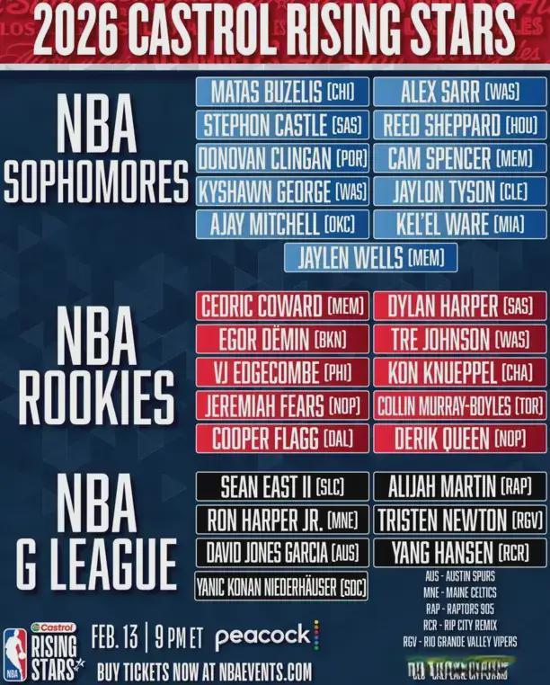 如果你刷到了今日NBA官方公布的2026年全明星新秀賽完整名單,那必然不會(huì)毫無(wú)情緒波動(dòng)。