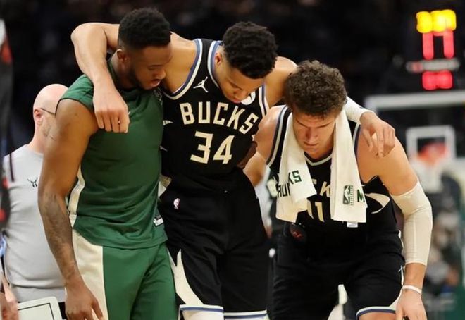 而更加雪上加霜的是,在對陣殘陣掘金一役中,約基奇、穆雷等掘金主力缺陣,幾乎派上了純替補陣容,但雄鹿仍然輸掉了比賽,堪稱本賽季最恥辱的一戰。最致命的是,在這場比賽中,第四節還剩30多秒時,球隊當家球星字母哥在毫無對抗的情況下突然痛苦倒地,手捂小腿無法站起,隨后只能被攙扶著一瘸一拐地走下場。