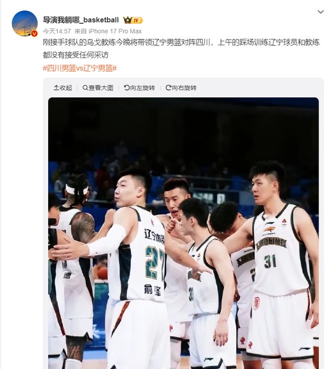 雙方大名單出爐,四川隊只有龐茲一名外援。這是遼籃在楊導離任后的首個客場比賽。