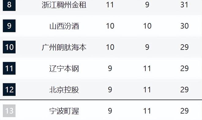 14-20分別是吉林、新疆、福建、天津、同曦、江蘇和四川。吉林、福建和新疆這輪全部都輸球了,特別是新疆好不容易崛起,這輪卻最后時(shí)刻崩盤(pán)輸給同曦。至于吉林和福建,相比于賽季初期,他們的排名還在持續(xù)下滑。天津現(xiàn)在已經(jīng)三連敗,同曦即便這輪取勝,但他們目前也就6勝,他們的狀態(tài)需要鞏固住。江蘇最近狀態(tài)非常好,10場(chǎng)贏了4場(chǎng),可惜這輪輸給了浙江。四川已經(jīng)20連敗。