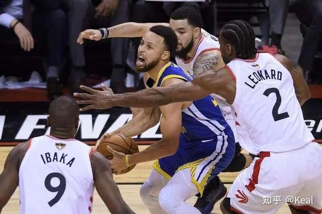 寧愿讓球離開庫里手里,也不讓他完成一次舒服的出手;甚至在某些系列賽里干脆上“Box-one”這種幾乎不屬于NBA的防守策略——在19年對陣猛龍的總決賽,猛龍四個人收縮,另一個人全場盯死庫里,只為把他從進攻里“剝離”出去。