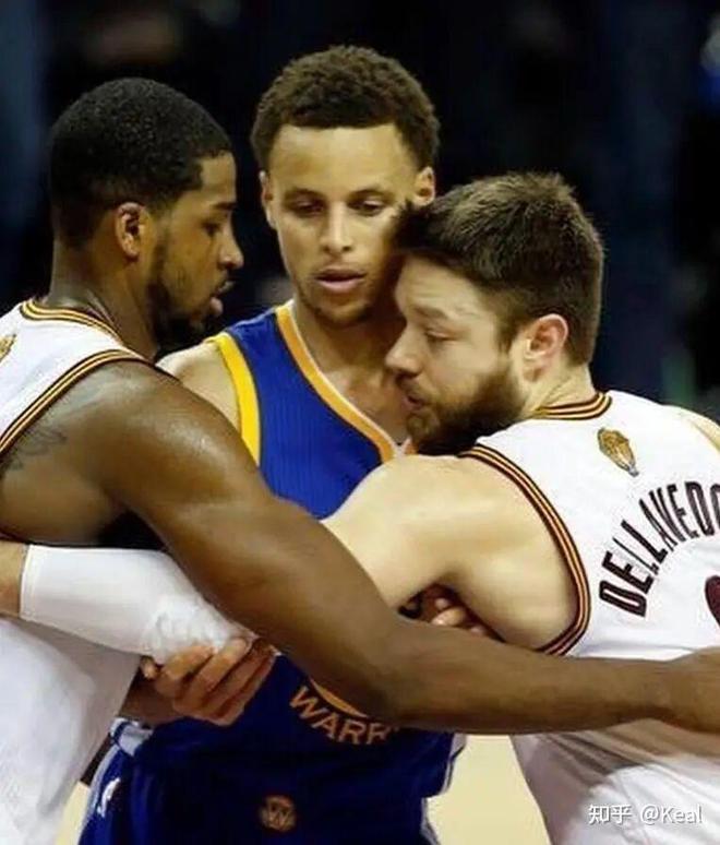拉拽推抱都無法形容庫里面對的防守,只能說觀感上,庫里更像是每時每刻身上都掛了不止一個人在打球。
